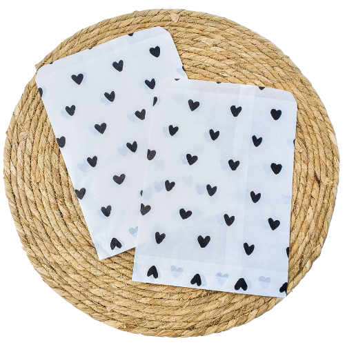 Zijdezacht cadeauzakje met hartjes bedrukking